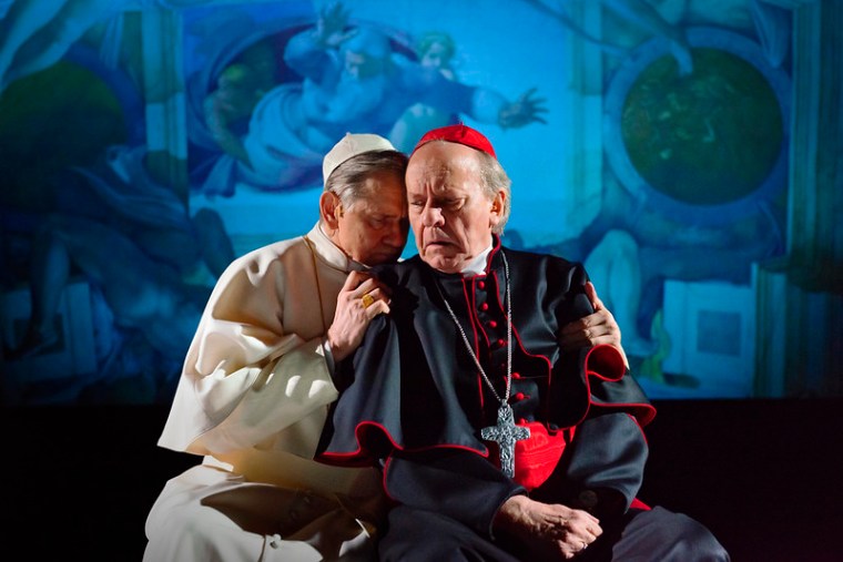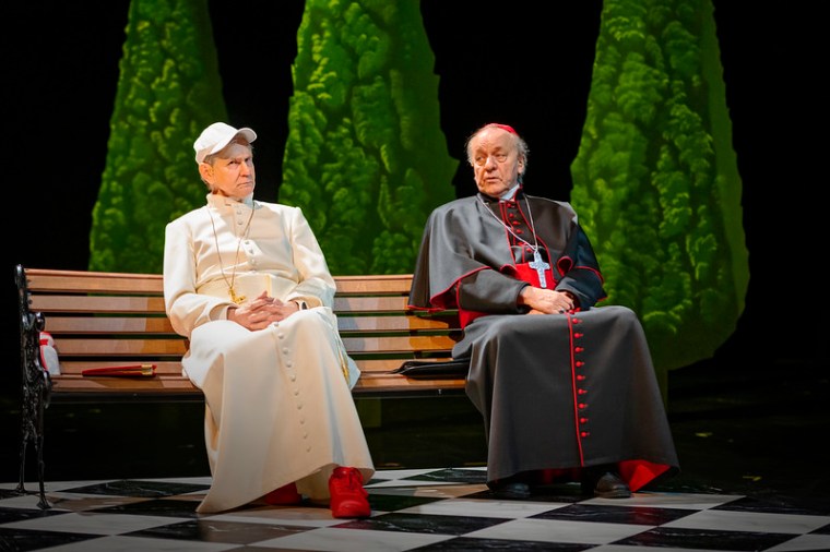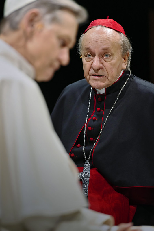 Näytelmän rakenne esittelee oivallisesti kirkonmiehet dialogissa heidän elämäntyötään kunnioittavien ja ihailevien naisten kanssa. Paavi Benedictus käy kirpeää, mutta älykästä sananvaihtoa pitkäaikaisen ystävänsä, sisar Brigittan kanssa (Ulla Koivuranta) yhteisen päivällisen ja tv-hetken äärellä. Sisar Sophia (Anne-Mari Alaspää) on saapunut Buenos Airesin slummiin kuulemaan kansanomaista kardinaali Bergogliota, joka on nuoren nunnan esikuva.