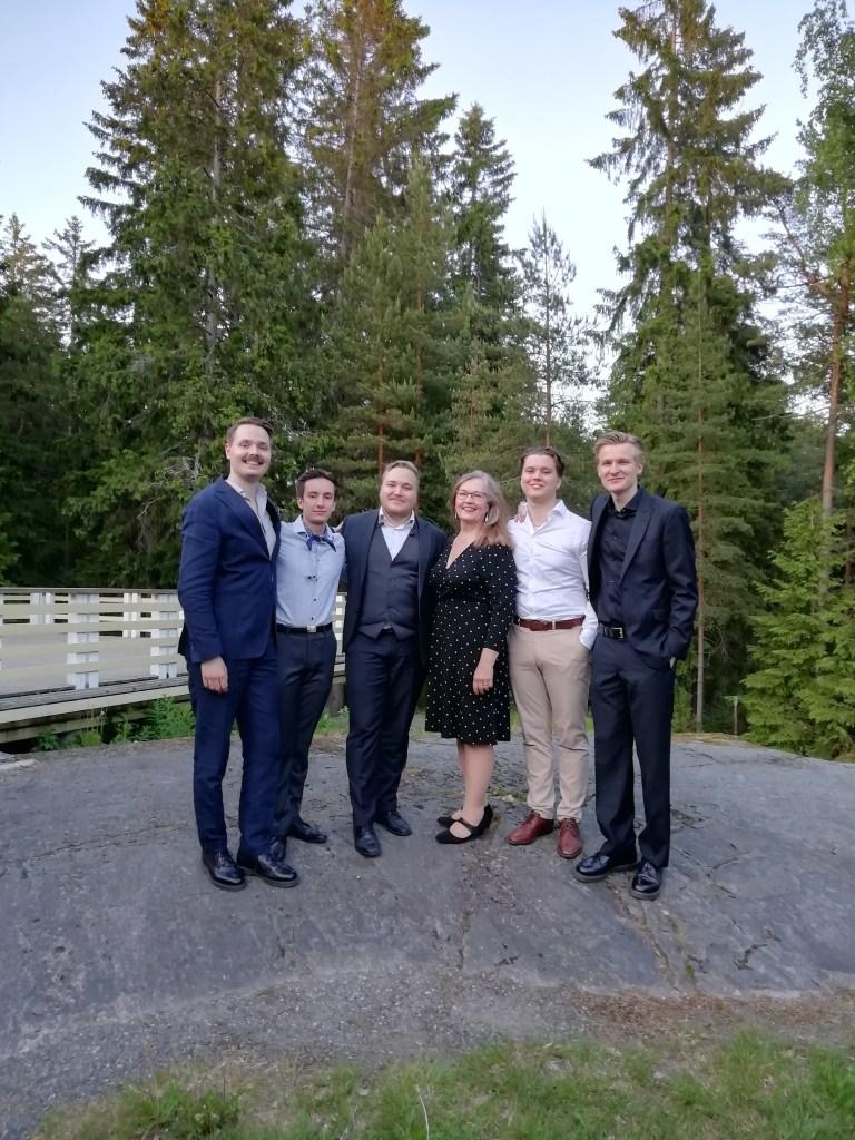Olen itse enemmän musiikin kuuntelija, soittaja ja analysoija kuin tanssija, ja tervehdin ilolla uutta yhtyetuttavuutta, jota en ollut aiemmin kuullut. En seurannut televisiosta, miten he voittivat orkestereiden SMOrk-tittelin, kilpailuskeptikko kun olen. Useasti kilpailuissa määräävät markkinavoimat ja paljolti muut kuin laatukriteerit, luotan enemmän omaan koulutettuun korvaani. Mutta kyllä tämä voittoisa yhtye osti minut äkkiä puolelleen! Ensimmäisen setin loppupuolella soivat Kärki- Helismaan unohtumaton Sinun silmiesi tähden ja sen parina Michel Legrandin klassikko Cherbourgin sateenvarjot. Terttu on itseäni enemmän tanssi-ihmisiä, ja luotin hänen sanaansa siitä, että kappaleet tuntuivat heti poljennoltaan oikeinkin tanssimaan houkuttelevilta. Itse ilmaisisin saman joustavana, mutta tiiviinä ja yhtyeen yhteisenä legatona, mikä ei hitaassa foksissa aina kaikilta yhtyeiltä onnistu. Lisäksi ihastelimme molemmat laulusolisti Anton Lepistön pehmeää ääntä ja itseltäni hän sai pisteet myös puhtaasti lauletuista kohtuullisen hankalista, isoista intervalleista.