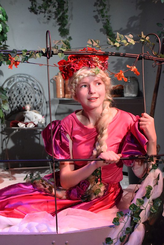 Viekas noita Esmeralda (Venla Lattu) houkuttelee lapseksi kasvaneen Tähkäpään mukaansa ja sulkee hänet asumaan torniin. Vanhemmat ikävöivät lastansa ja etsivät häntä suruissaan ihan näytelmän loppuvaiheisiin asti. Toisaalla valtakunnassa käsikirjoittaja Hanna Marjaana purjehtiikin sitten railakkaammille seikkailuvesille. Tarina saa modernia tvistiä kuningashuoneen sisäisistä sukupolvien välisistä ristiriidoista. Seuraamme ihan sellaisia normi yhteenottoja velttoilusta ja sipsinsyönnistä isän ja pojan eli kuninkaan ja prinssin (Eero Maunu) välillä. Kuningas kyllä ragee vähän turhaankin raivokkaasti, kärsii varmaan työstressistä. Tyyni taloudenhoitaja Jameskin (Tiitus Pietilä) saa jokapäiväiset potkunsa. Raivopuuskan seurauksena epämääräinen lehmä-lohikäärmemutantti Lehnu (Ava Lattu) joutuu kuninkaan määräyksestä hiiteen ja kaveriaan ikävöivä prinssi lähtee etsimään sitä.