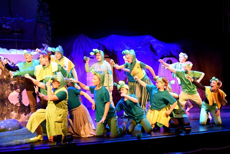Käsikirjoitus palvelee täsmällisesti juuri tätä suurella ikä- ja kokemushaitarilla näyttelevää ryhmää. Omilla tavoillaan vivahteikkaita rooleja on kirjoitettu sopivasti niin uusille, ekakertalaisille näyttelijöille, kuin vanhemmille konkareille. Aikuisesta katsojasta tuntui, että tässä on tehty pedagogisesti räätälöityä työtä ja jokaiselle löydetty rooli, jossa pääsee kehittymään seuraavalle askeleelle teatterin tekemisessä. Hahmojen eri tavoin draamalliset luonteet tulivat pienillekin katsojille selviksi ja näyttelijät tuntuivat nauttivat niiden ilmentämisestä (ohjaus Mira Lattu). Esiintyjäjoukko pääsee näyttämään osaamistaan monipuolisesti puheilmaisun monipuolisuuden, liikkumisen ja laulun alueilla.