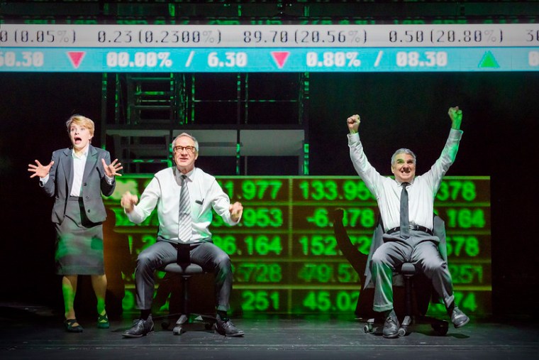 Näytelmän alkua vieroksuin edelleen. Enemmän se tuntui kornilta pikakelausnäytelmän aloitukselta, mutta kyllähän se siitä käyntiin lähti. Pikakelaushistoriikin jälkeen starttasi erittäin tasapainoinen, viihdyttävä, ja kuitenkin selvästi ja samalla tietoon pohjautuva esitys. Tietotekniikan kehitys 30 vuodessa on ollut yhtä hurjaa haipakkaa kuin meno Nokiassa. Ei ehtinyt jäädä miettimään tätä hetkeä, kun suunta oli jo kohti seuraava niin näyttämön tapahtumissa kuin tarinassa, jossa kansainvälistyminen sitoutuu peräkylän innovatiivisuuteen, Kalevala ja sisu maailmanluokan bisneskilpajuoksuun ja Wall Streetin osakekauppoihin.